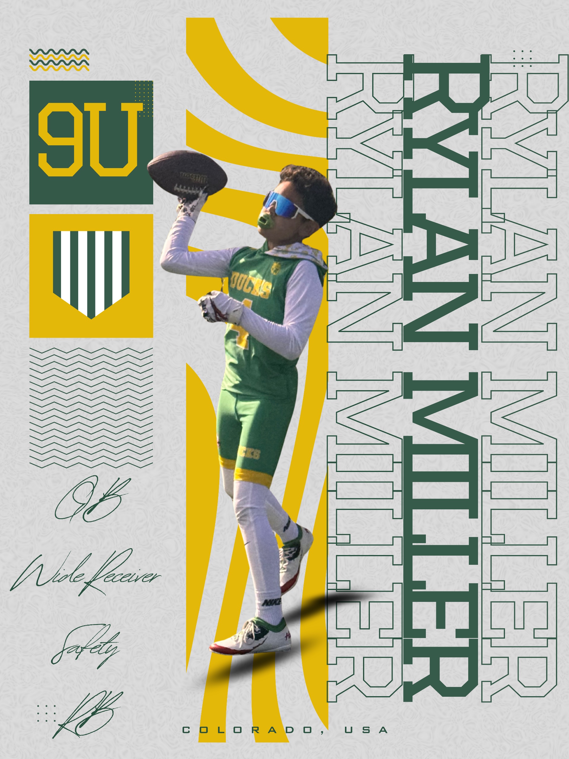 Rylan is a 9-year-old QB and Skills position athlete from Colorado with 4 years of experience. He loves reading the defense to pick the ball and going for long passes to make tough catches! He is looking for a competitive team to travel with and join as a part time player or for tournaments.